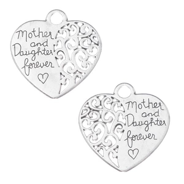 Description: Breloque mère et fille pour toujours en alliage de zinc. L'article mesure 28 mm de large x 28 mm de long x 2 mm d'épaisseur, trou de 4 mm.
