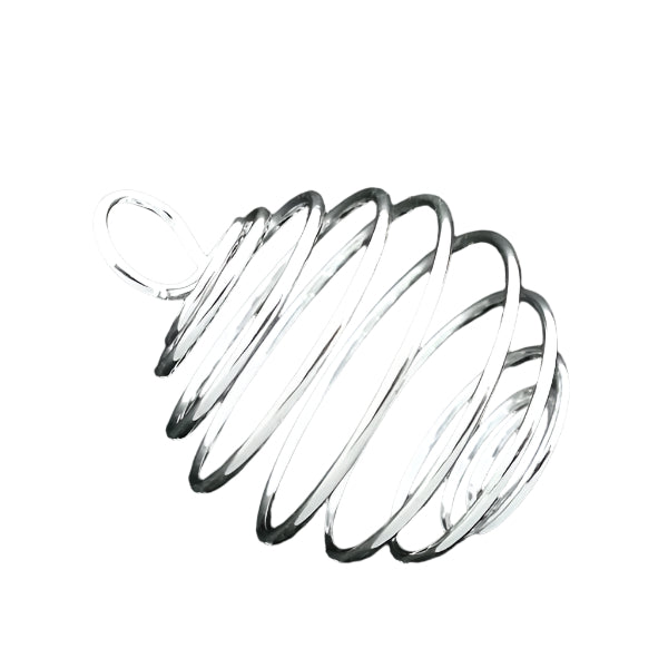Description: Pendentif cage à billes en spirale en alliage à base de fer plaqué argent. Mesure environ 24 mm x 27 mm - 25 mm x 29 mm, trou de 5,5 mm. Le fil fait 1 mm d'épaisseur. La cage peut contenir un article mesurant de 18 mm à 22 mm. Sans nickel, sans plomb.