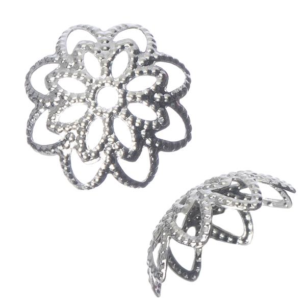 Description : Utilisé pour mettre en valeur une perle, briser un motif ou transformer une perle en pendentif. Capuchons en laiton couleur nickel. 10 mm de large x 4 mm de long, trou de 1 mm.