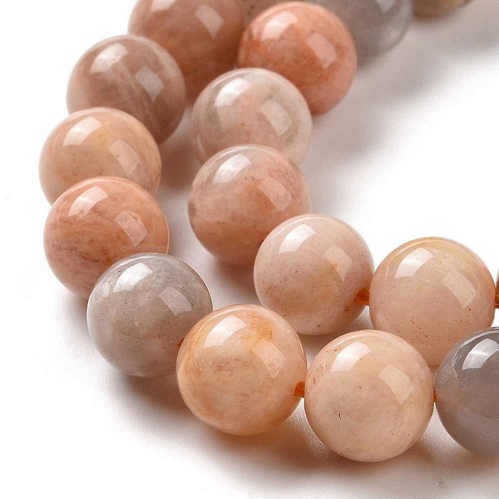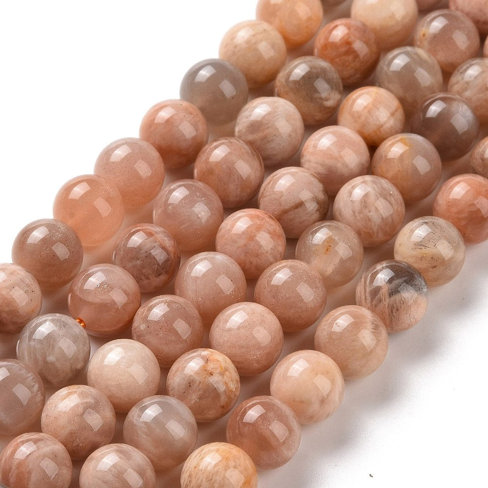 These radiant beads combine the soft shimmer of Moonstone with the warm sparkle of Sunstone, creating a harmonious mix of gentle greys, creams, and peachy copper tones. Moonstone is often linked with intuition and emotional balance, while Sunstone is believed to inspire joy, confidence, and vitality. Together, they form a beautiful pairing of yin and yang energies, making them perfect for jewellery that feels both soothing and energizing. Slight variations in colour, size, and markings are to be expected, adding to their one-of-a-kind appeal.