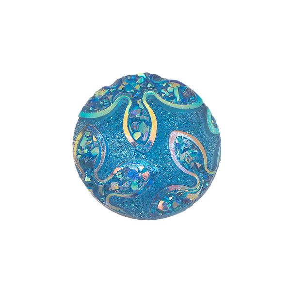 Description: Cabochon rond à dos plat en résine opaque. Mesure 12 mm.