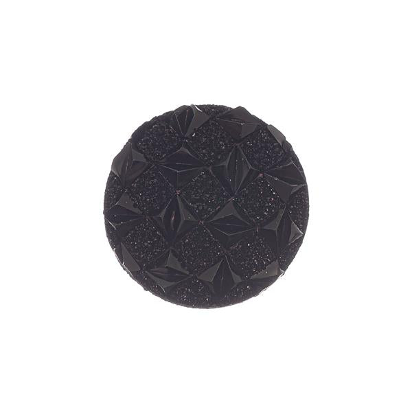 Description: Cabochon rond à dos plat en résine opaque. Mesure 12 mm.