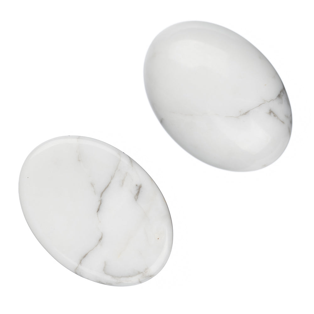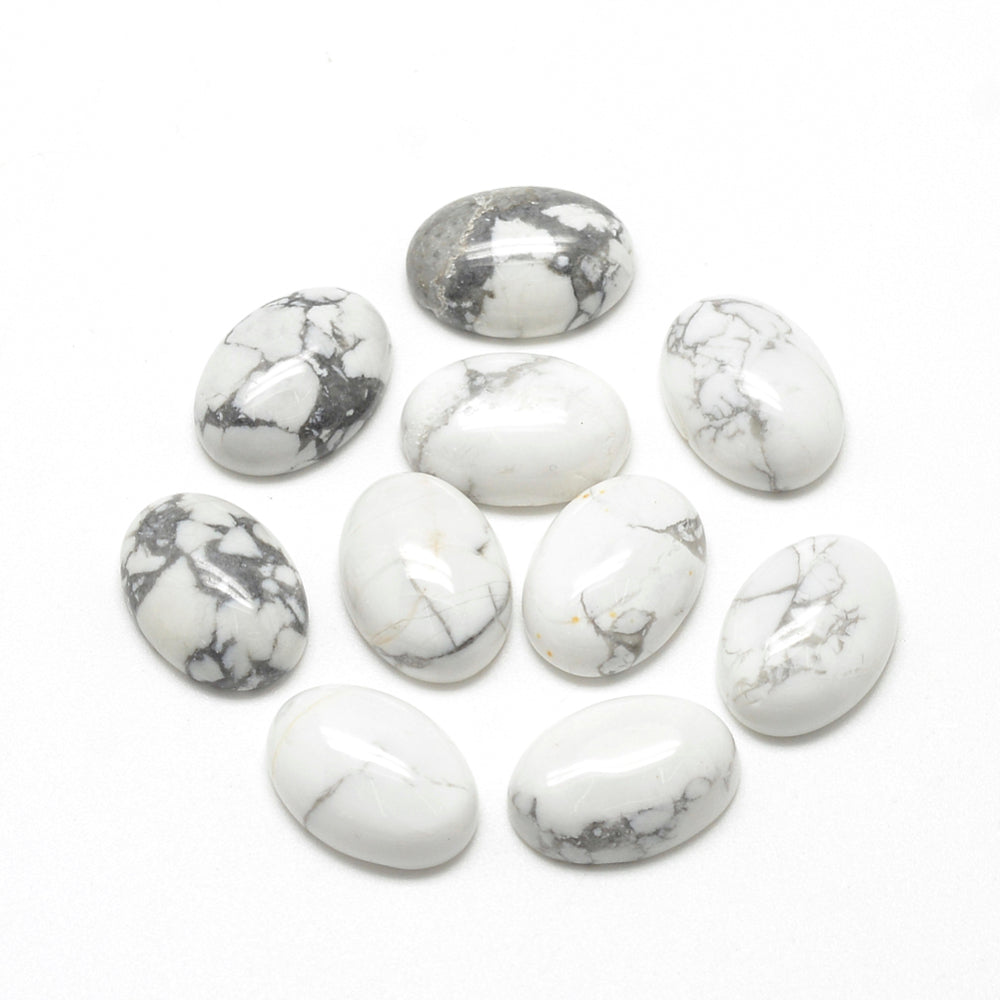Description: Natural white howlite gemstone cabochons. Used for making beaded earrings, pendants, and more. This item measures 13mm wide x 18mm long x 5mm thick. No two gemstones will be exactly alike because each one has its own unique combination of pattern and color.