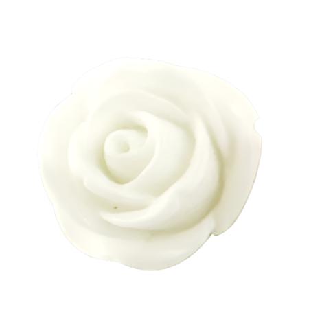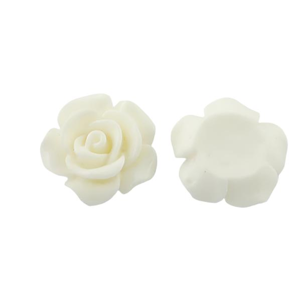 Description: Cabochon fleur en résine opaque à dos plat. Mesure 15 mm de large x 6 mm d'épaisseur.
