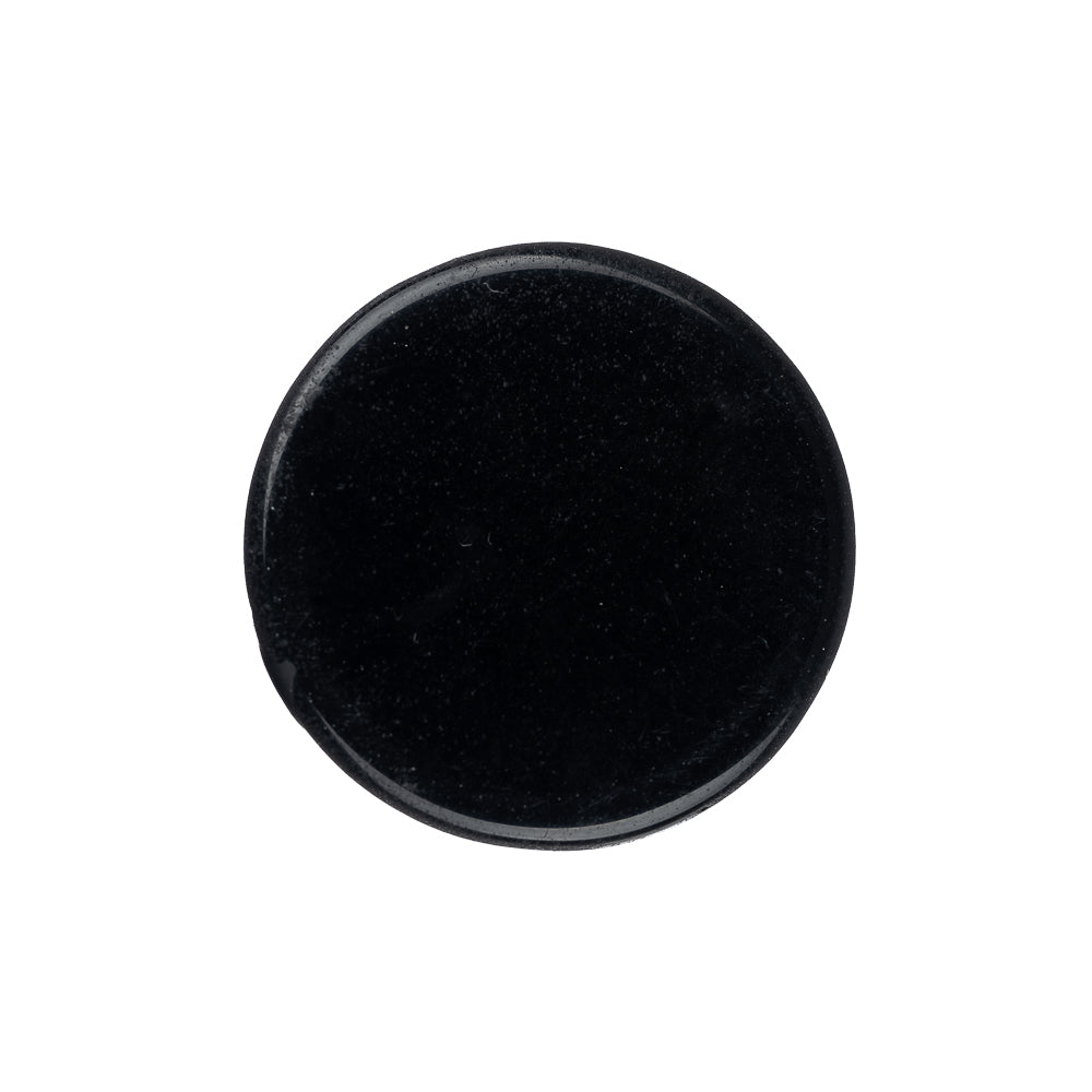 Description: Cabochon rond à dos plat en résine mate opaque. Mesure 18 mm de large x 7 mm d'épaisseur.