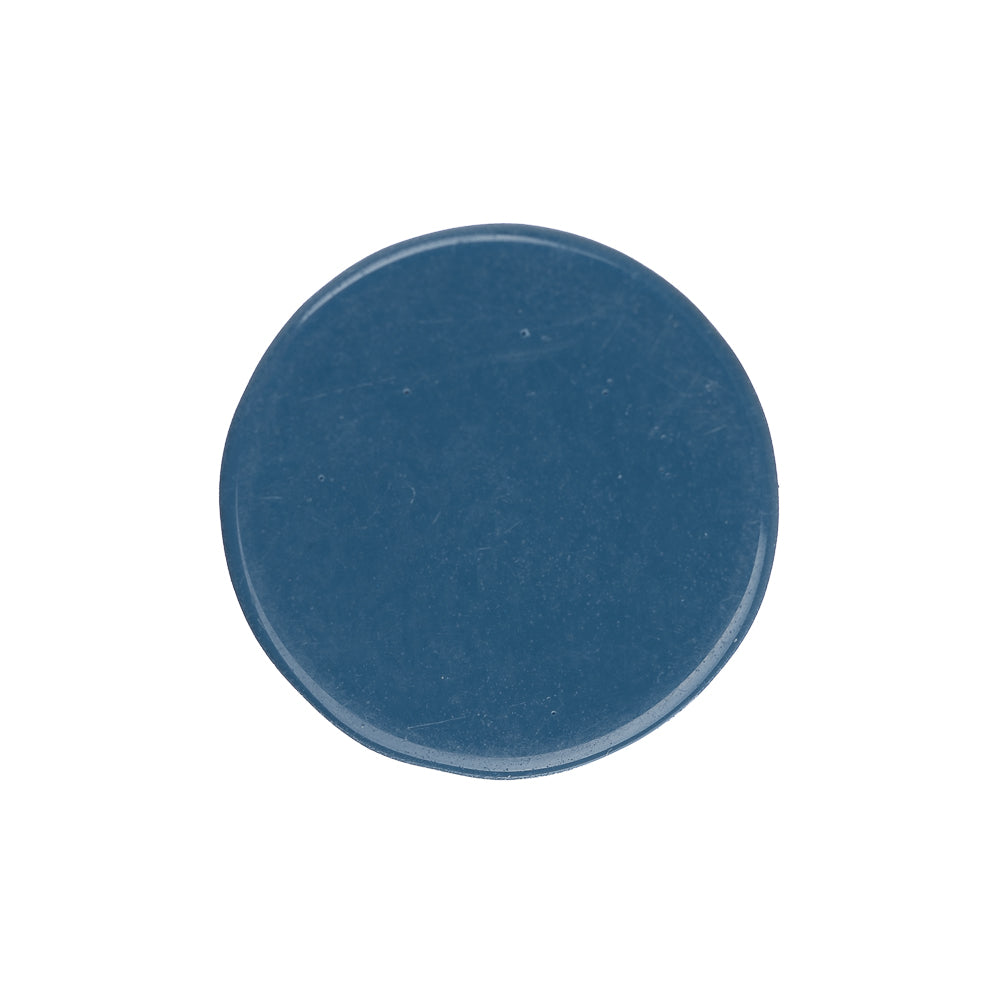 Description: Cabochon rond à dos plat en résine mate opaque. Mesure 18 mm de large x 7 mm d'épaisseur.