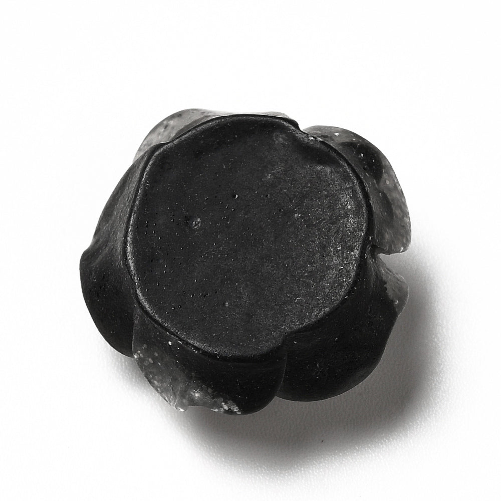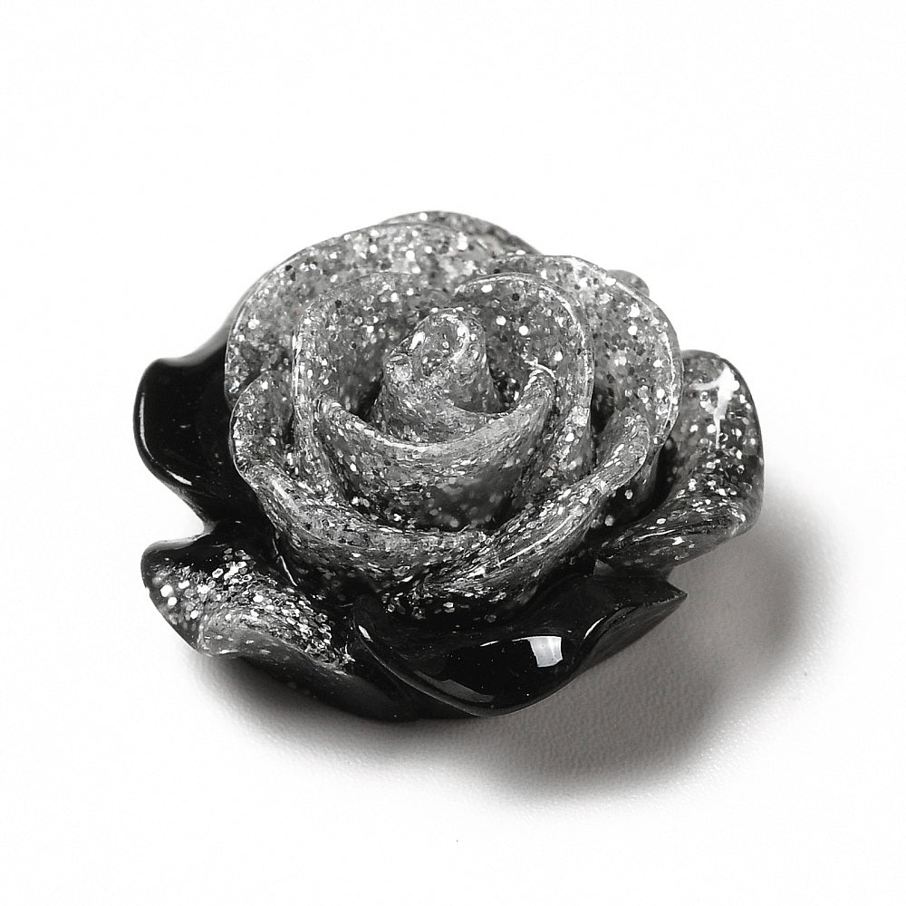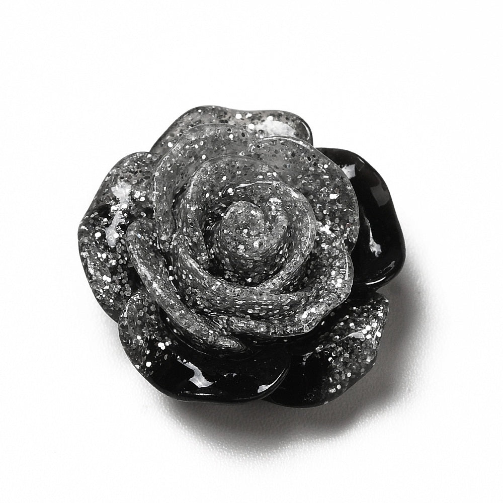Description: Opaque resin glitter flower flat back cabochon. Measures 19mm wide x 9mm thick.