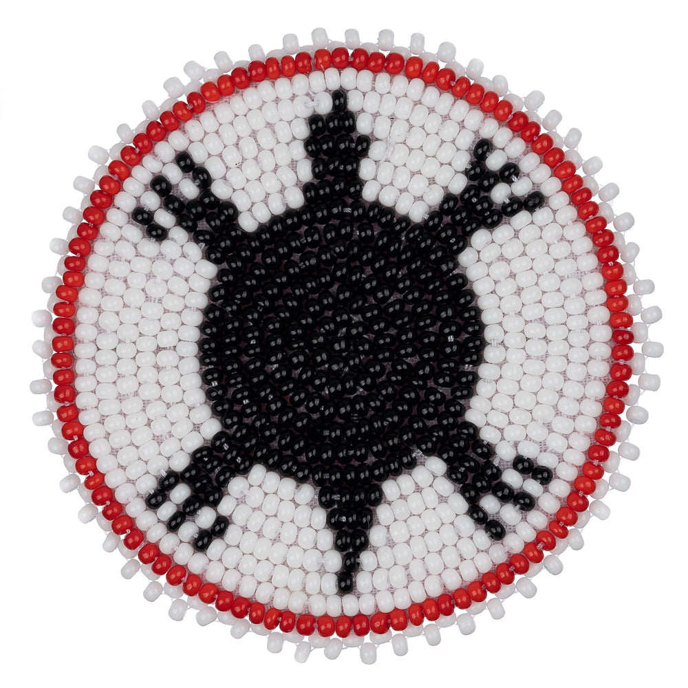 Description: Rosette perlée avec support en cuir. Idéal pour une utilisation sur des objets d'artisanat indigènes tels que des mitaines, des mocassins, une pochette ou un sac à main, des vêtements, des insignes, des élastiques à cheveux ou des barettes et des cravates bolo. Importé.