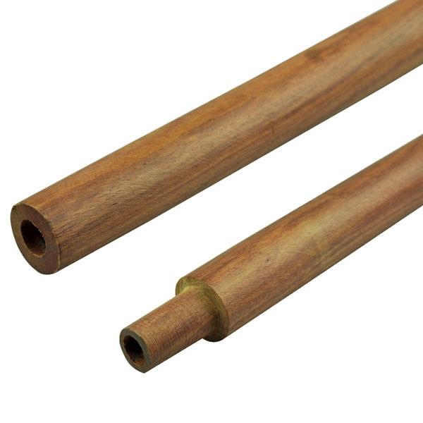 Description: Tige de pipe en pin verni fabriquée à la main pour fabriquer un calumet de la paix.