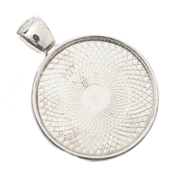 Description: Pendentif serti cabochon en alliage de zinc plaqué argent. Mesure 28 mm de large x 36 mm de long, trou de 3,5 mm x 5,7 mm. Convient à un cabochon de 25 mm (1 pouce) ou à un autocollant époxy. Sans nickel, sans plomb.
