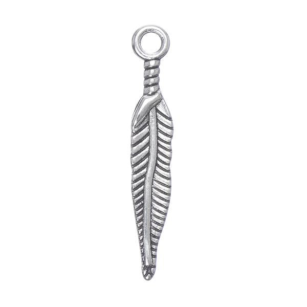 Description : Breloque plume en métal. L'article mesure 5 mm de large x 29 mm de long x 2 mm de trou. Sans plomb, sans cadmium.
