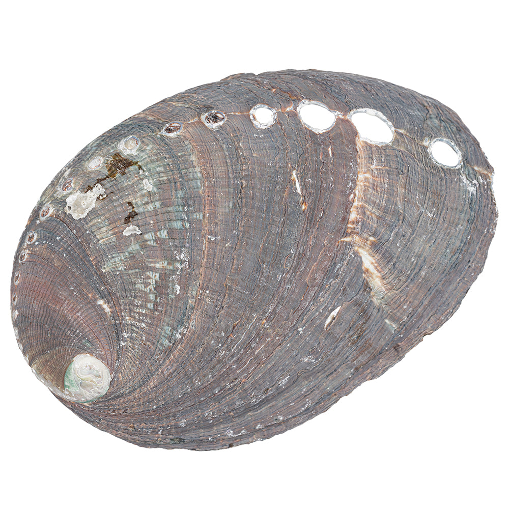 Our Local Abalone Shell (Haliotis diversicolor) — each measuring at least 2.36 inches — offers a compact, heat-resistant vessel for your smudging and cleansing rituals. Its softly iridescent interior glows with subtle greens, blues, and creams that gently catch the light, while the rugged exterior reflects its natural coastal heritage. Ethically collected from China’s pristine shores, this durable shell safely cradles ashes and embers from sage, palo santo, or other sacred herbs.