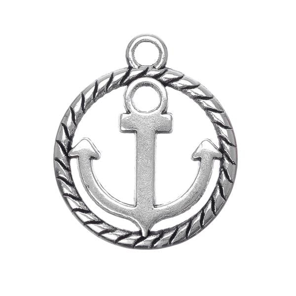 Description: Breloque ancre en alliage d'argent antique. L'article mesure 16 mm de large x 18 mm de long x 2 mm d'épaisseur avec un trou de 1,5 mm. Sans plomb.
