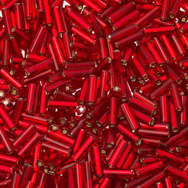 #3 Czech Bugle Beads Silver Lined Red Sac de 25g
