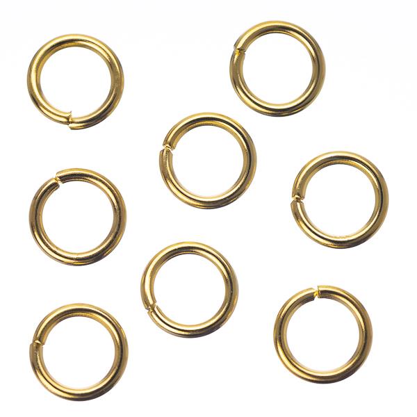Description: Anneaux de saut dessoudés en laiton plaqué de calibre 18. 7 mm de diamètre extérieur x 1 mm d'épaisseur. Sans plomb, sans nickel, sans cadmium.