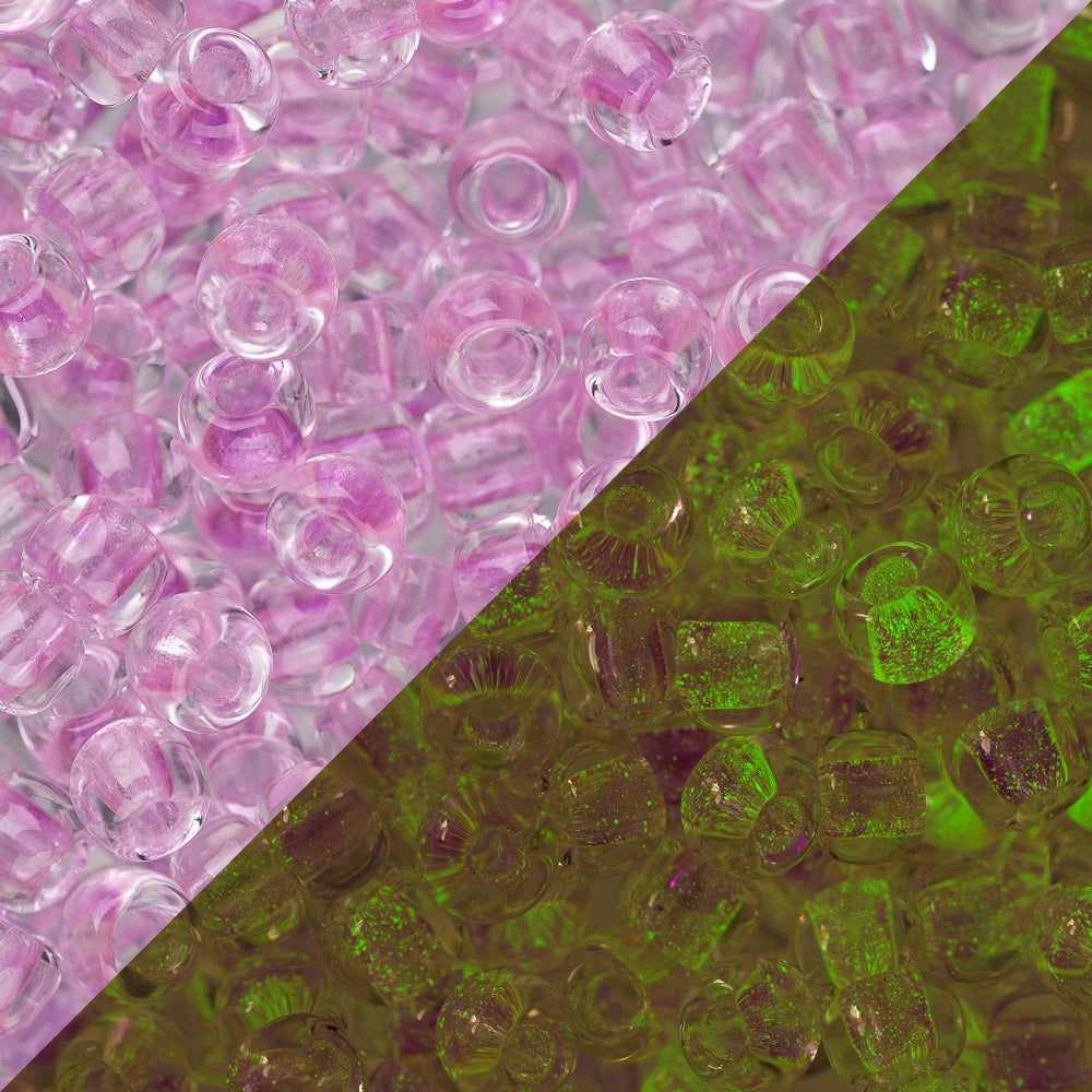 8/0 Toho Seed Beads #2724 Dark Pink / Green Pink 8-9g Vial