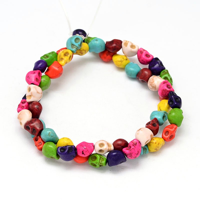 These bold skull-shaped beads are dyed in a mix of vibrant colours such as red, green, yellow, pink, purple, and turquoise-blue. Symbolic of transformation and protection, skull beads are often used in bohemian, gothic, or festival-inspired jewellery. While man-made, they capture the veined look of turquoise and bring both colour and attitude to any design. Their playful yet edgy style makes them perfect for statement pieces and creative projects. Slight variations in colour, size, and markings are to be expected, adding to their one-of-a-kind appeal.