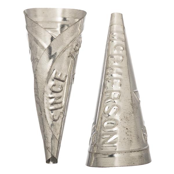 Description : Les cônes de jingle MacPherson sont fabriqués en laiton gaufré. Utilisés pour confectionner des robes à jingle, ces jingles sont déjà enroulés et prêts à être attachés à une robe à jingle. Attacher par sertissage à la frange en tissu. Traditionnellement, on utilisait le dessus des canettes de tabac à chiquer. Les lèvres ont été coupées et la partie ronde centrale a ensuite été roulée en jingles.