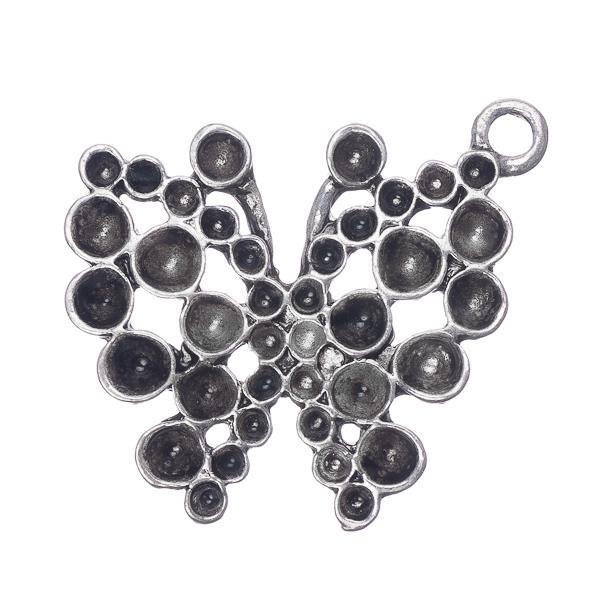 Description: Pendentif papillon en alliage d'argent antique. L'article mesure 28 mm de large x 25 mm de long x 3 mm d'épaisseur avec un trou de 2 mm. Sans plomb, sans cadmium et sans nickel.