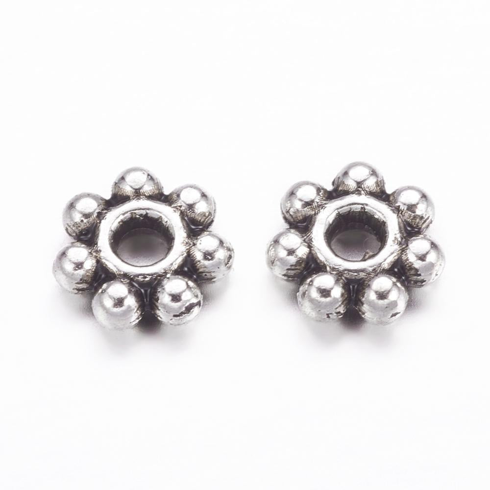 Description : Perle métallique en alliage de zinc. Mesure 4,5 mm x 1,5 mm, avec un trou de 1 mm. Sans plomb, sans cadmium.