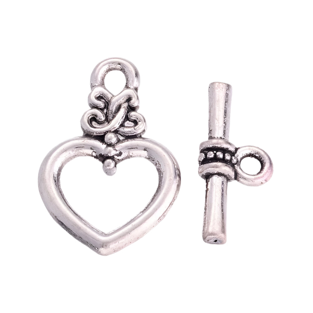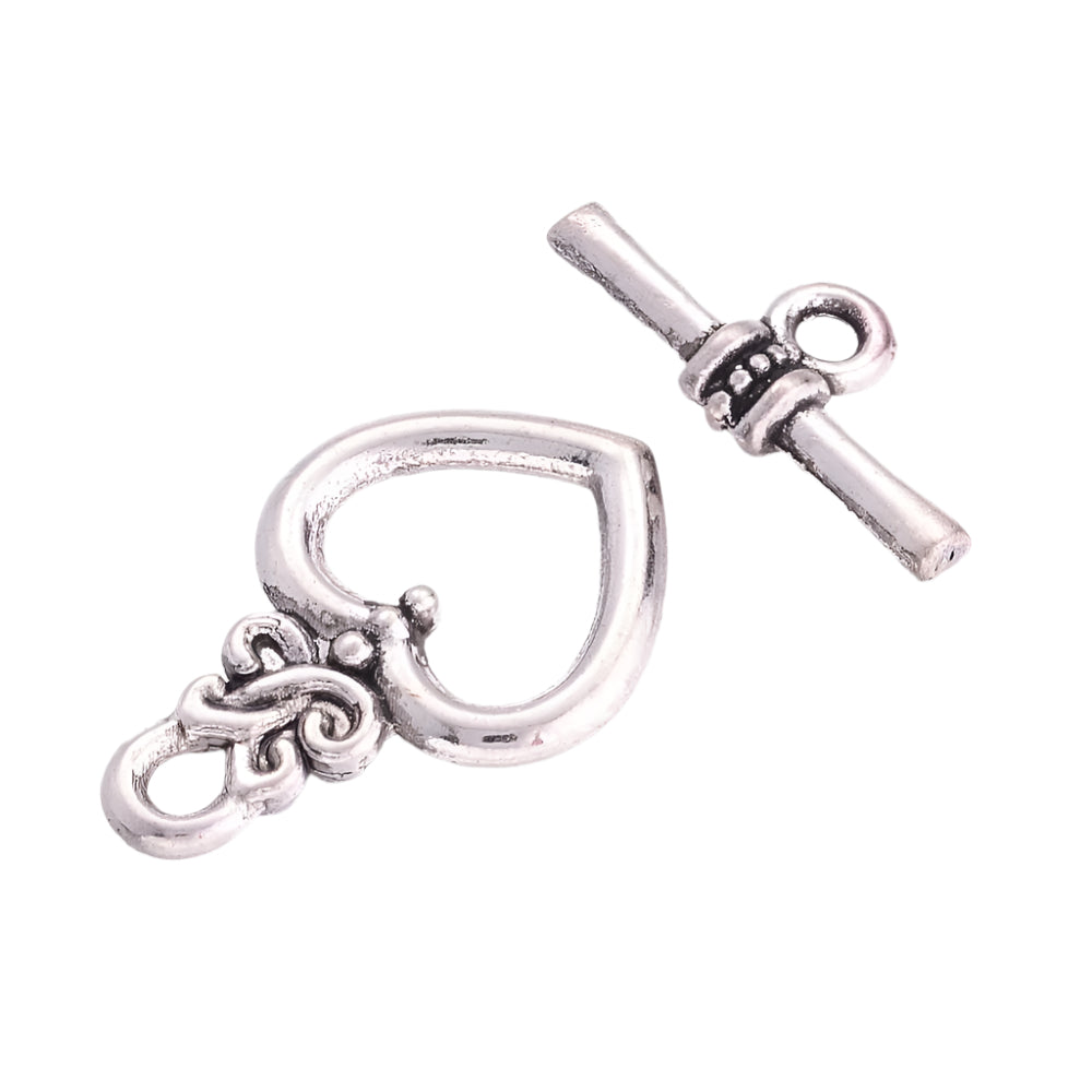 Description: These Ornate Toggle Clasps are an easy-to-use essential for jewelry making. Attach to end of necklace, bracelet or anklet to finish your jewelry piece. Toggle measures about 13mm wide, 20mm long, Bar: about 8mm wide, 17mm long, 4mm thick, hole: 2mm. Lead free, Cadmium free.