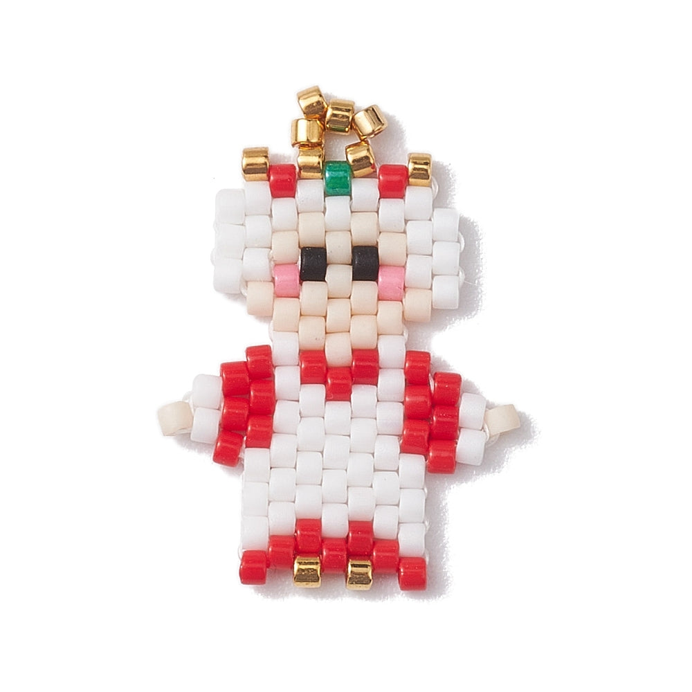 Add holiday cheer to your creations with our Mrs. Claus Pendant, a playful design made from colourful seed beads. Featuring bright red and white details with a golden crown-like accent, this handmade-style pendant captures the warmth and joy of the season. Perfect for necklaces or statement earrings, it’s a delightful piece that pairs beautifully with Santa or other Christmas designs.