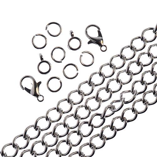 Description : Chaîne et résultats correspondants. Chaque ensemble comprend une chaîne de 36 pouces, 6 anneaux de saut, 2 bélières et 2 fermoirs de homard. Métal : Fer.