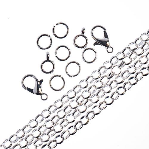Description : Chaîne et résultats correspondants. Chaque ensemble comprend une chaîne de 36 pouces, 6 anneaux de saut, 2 bélières et 2 fermoirs de homard. Métal : Fer.