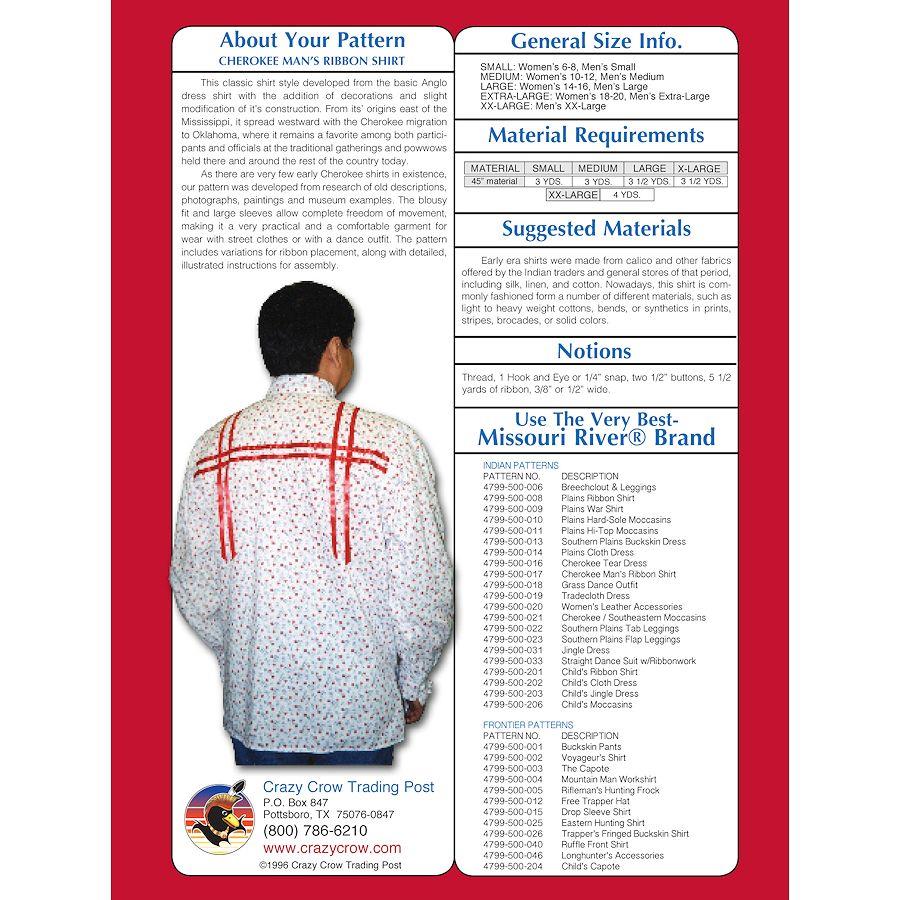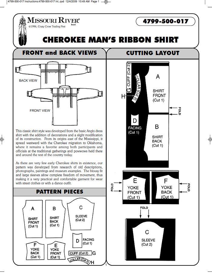 Description : ce modèle de style ancien a été développé à partir d'informations recueillies dans des musées et de vieilles photographies de Cherokee. Produit une chemise authentiquement détaillée dans le style tribal correct. Modélisé par Philip Cunningham - Comanche-Sioux.