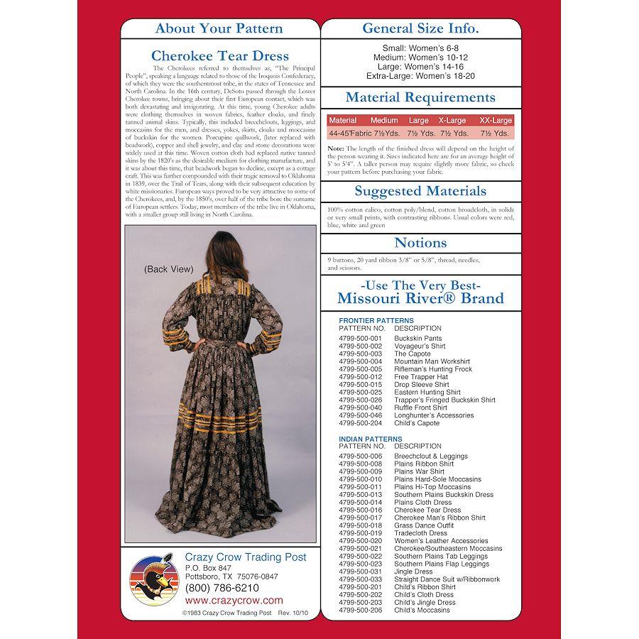 Description : Cette robe extrêmement populaire tire son nom de la méthode d'arrachage de ses pièces. Unique aux Cherokee et à plusieurs autres tribus du Sud-Est, il est facile à fabriquer et ne nécessite que quelques mesures simples. Des instructions complètes et entièrement illustrées sont incluses pour la couture et la finition, ainsi que pour le placement du ruban décoratif.