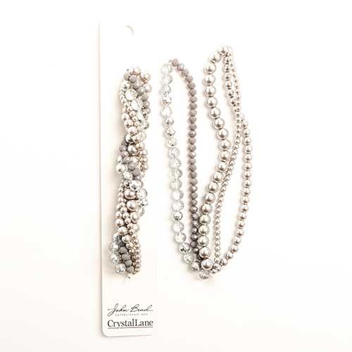 Description : perles de cristal torsadées Crystal Lane. 5 brins de 6 pouces par carte. Chaque carte comprend trois perles de verre (8 mm, 6 mm, 4 mm) et deux brins de perles de verre uniques.