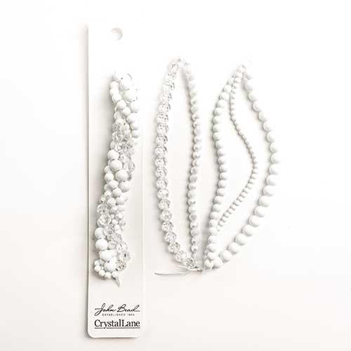 Description : perles de cristal torsadées Crystal Lane. 5 brins de 6 pouces par carte. Chaque carte comporte trois perles de verre (8 mm, 6 mm, 4 mm) et deux brins de perles de verre uniques.
