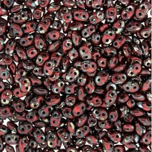 Tchèque Miniduo Perles 8g Corail Rouge Picasso