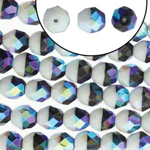 Fire Polished 6mm Duet Black White AB 25/Strand