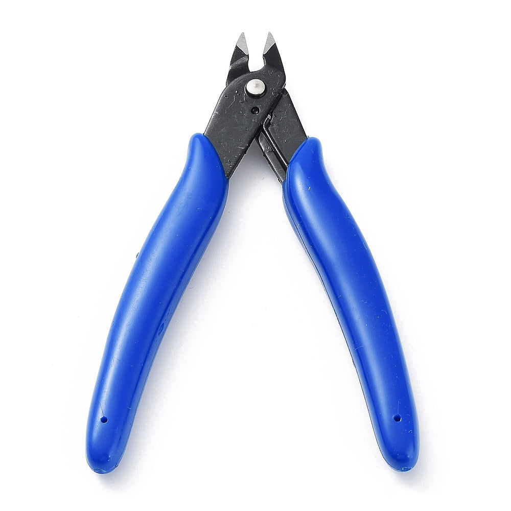 This flush cutter features sharp, angled blades that provide clean, precise cuts—ideal for trimming wire, headpins, eye pins, and other small components. The ergonomic blue plastic handles offer a comfortable grip for extended use, making them a reliable tool for both beginner and experienced crafters. Essential for beading, wire work, and general jewelry assembly. Made from durable 45# carbon steel.