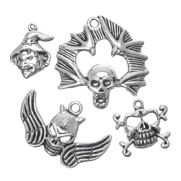 Description: Breloques en métal sur le thème d'Halloween en métal. 10 modèles assortis. Parfait pour Halloween. Les articles mesurent 21 mm de large x 25 mm de long - 39 mm x 38 mm x 2 mm d'épaisseur x 3,2 mm de trou. Alliage à base de zinc sans plomb et sans nickel.