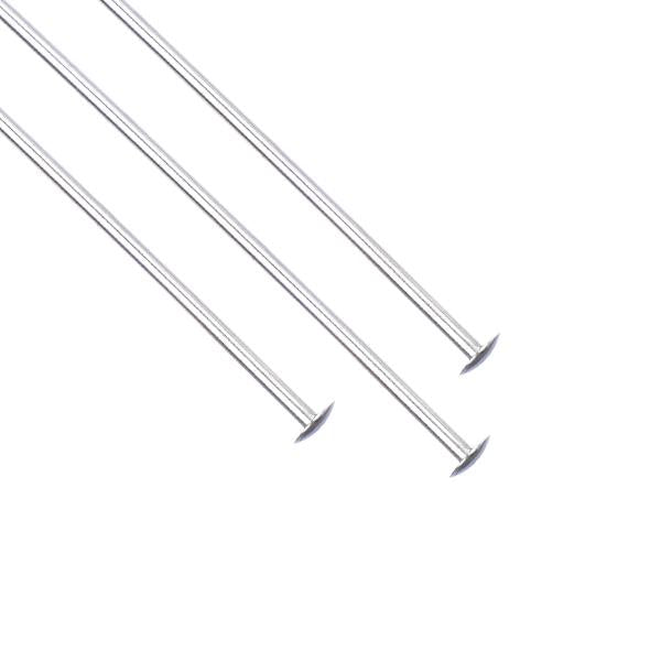 Description: Épingles à tête en argent sterling .925. Broche de calibre 21 (0,7 mm) de 1 pouce avec tête de 1,25 mm.