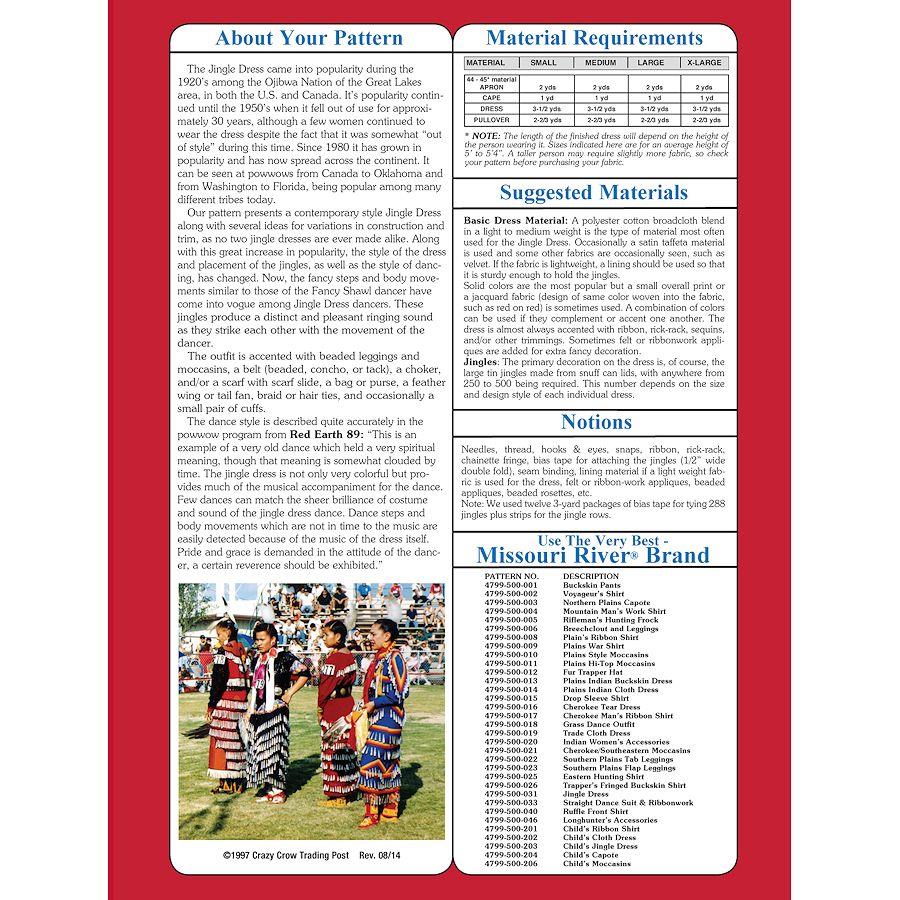 Description : ce style vestimentaire traditionnel des plaines du Nord a évolué et s'est répandu à travers les États-Unis. Notre motif vous permet de créer une robe de type jingle sous-robe, cape et tablier avec des options de placement de jingle. Modélisé par Erica Hart.