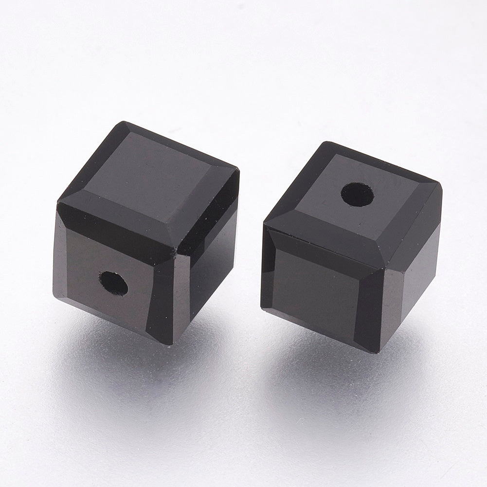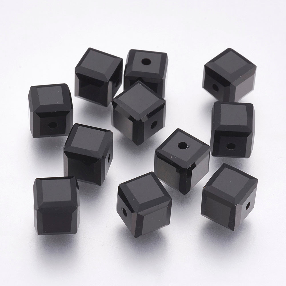 K9 Glass Cube Beads 8mm Jet Black 10/pk