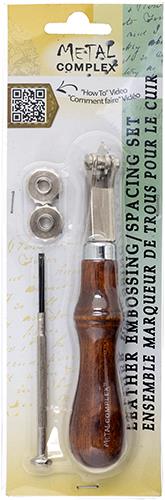 Description : Cet outil a été conçu pour faire des marques uniformes sur le cuir pour les travaux de couture. Insérez simplement la roue que vous désirez pour l'espacement de vos points, puis passez-la le long de la rainure. Il peut également être utilisé pour appuyer sur les points pour imiter un aspect cousu à la machine. Cet outil ne crée pas de trous dans le cuir. Comprend un tournevis et deux roues supplémentaires.