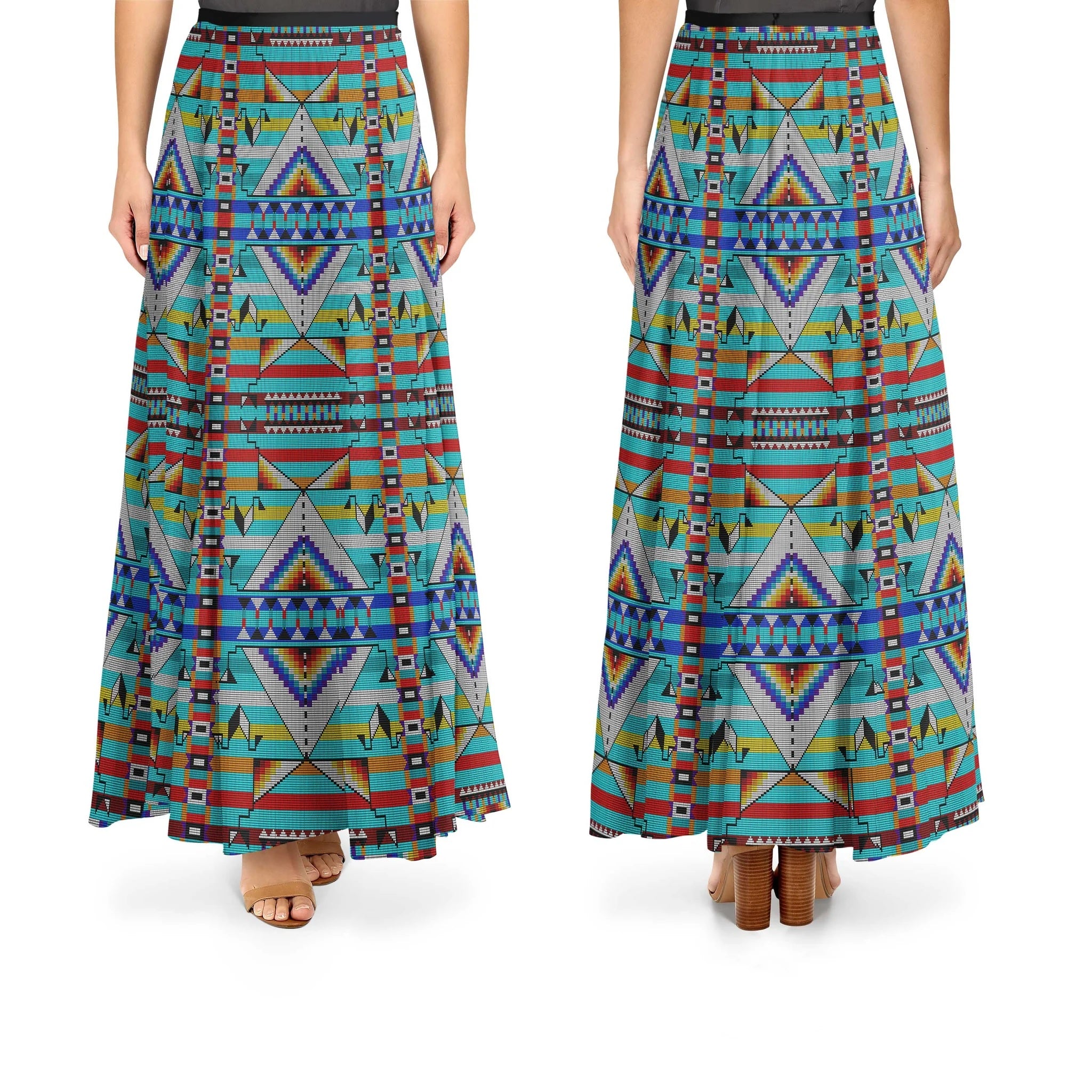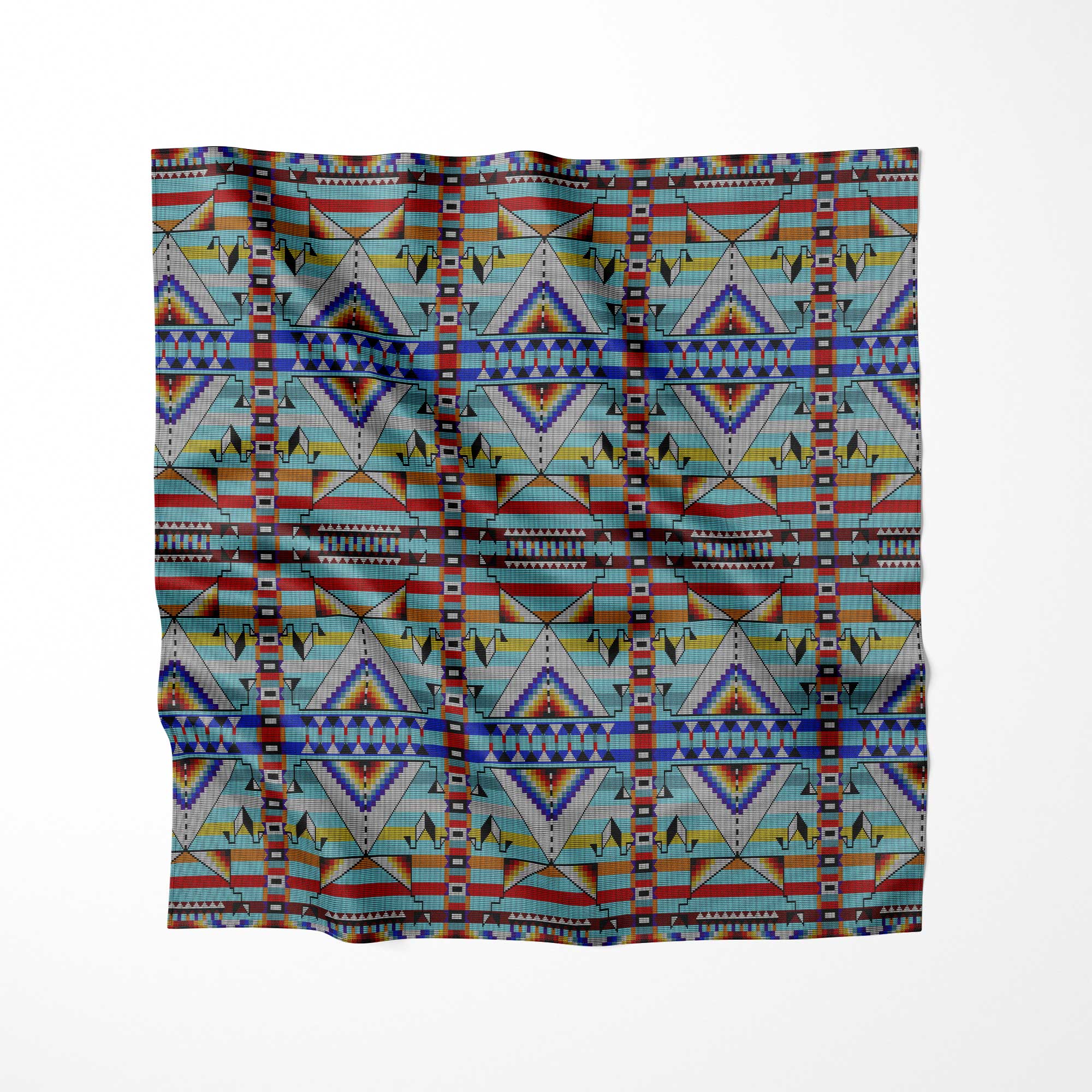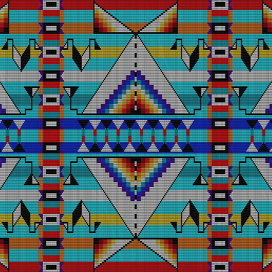 This cotton fabric features beadwork-inspired geometric medallions, stepped diamonds, and path motifs arranged in a balanced, symmetrical layout, evoking themes of medicine, blessing, and cultural storytelling in a design that feels powerful and ceremonial. Lightweight yet versatile, it is perfect for ribbon skirts, regalia accents, powwow accessories, and star quilts, while also lending itself beautifully to tote bags, table runners, and wall hangings that honor tradition. Sold by the half yard; multiple quantities are sold in one continuous cut. Pre-wash and dry before sewing to prevent shrinkage. Machine wash cold with like colours; tumble dry low; warm iron.