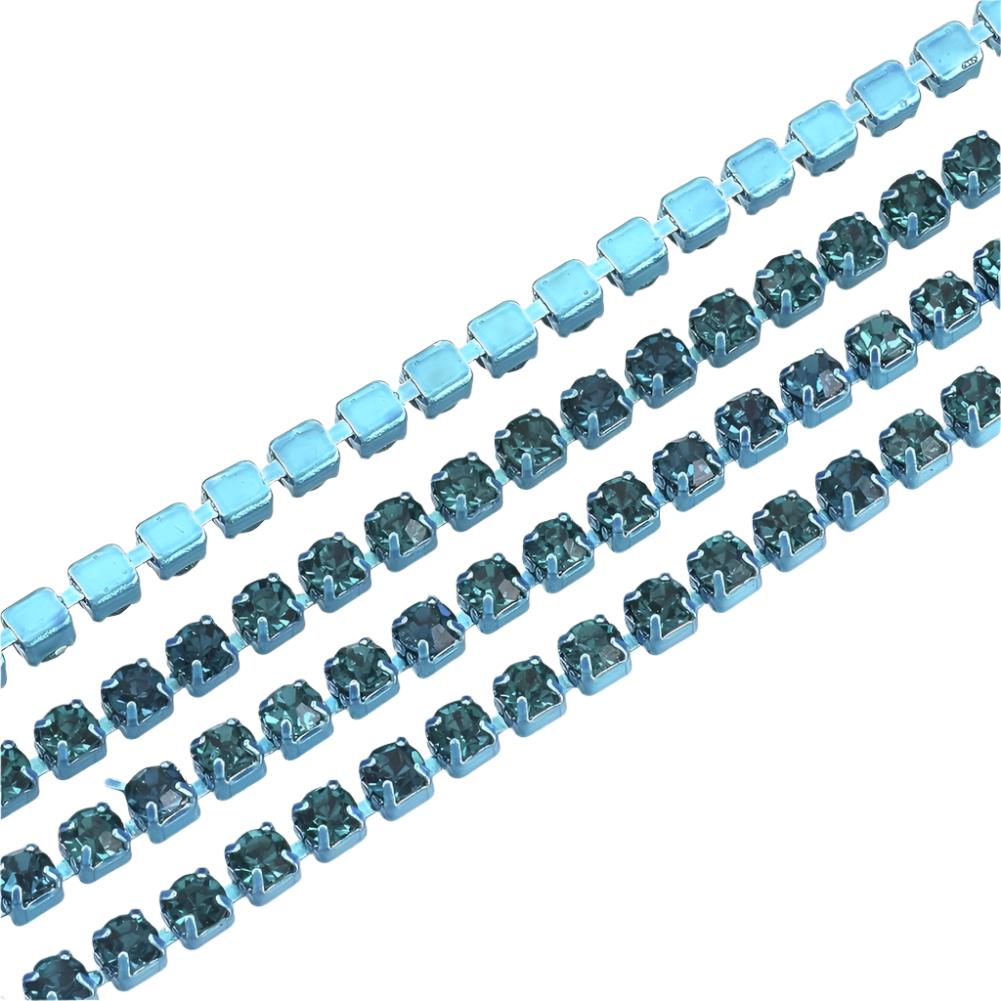 Description: Chaîne de strass en laiton de « Grade A » galvanisée, avec environ 260 tasses de strass par mètre.