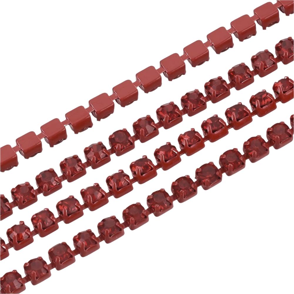 Description: Chaîne de strass en laiton de « Grade A » galvanisée, avec environ 260 tasses de strass par mètre.