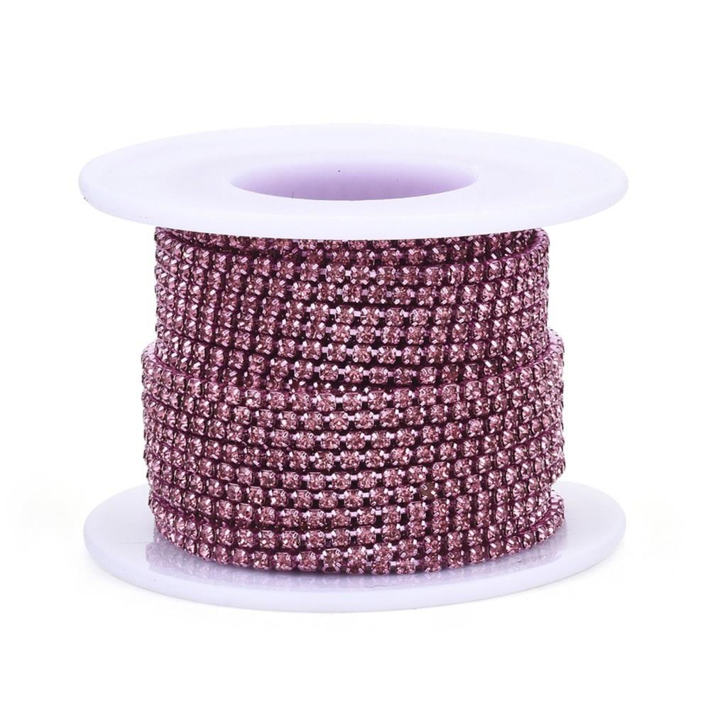 Description: Chaîne de strass en laiton de « Grade A » galvanisée, avec environ 260 tasses de strass par mètre.