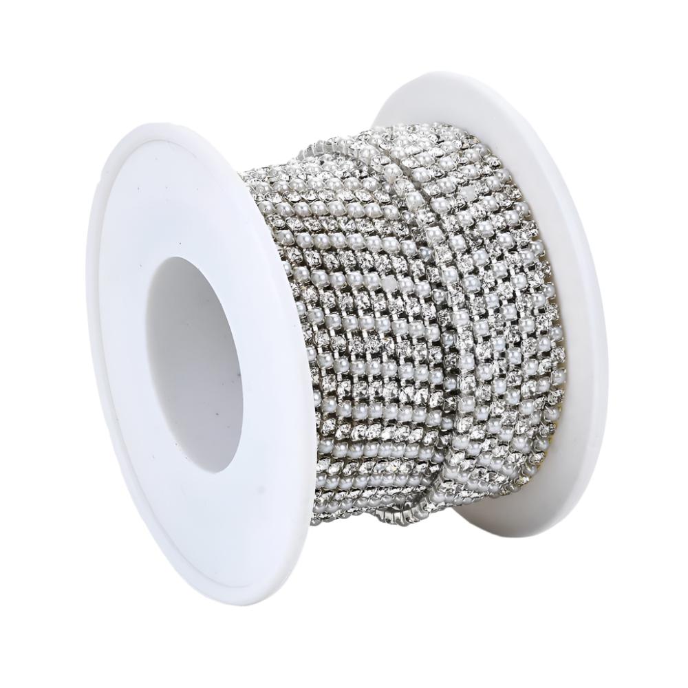 Metal Pearl & Rhinestone Banding 2mm Silver 10yd/pk