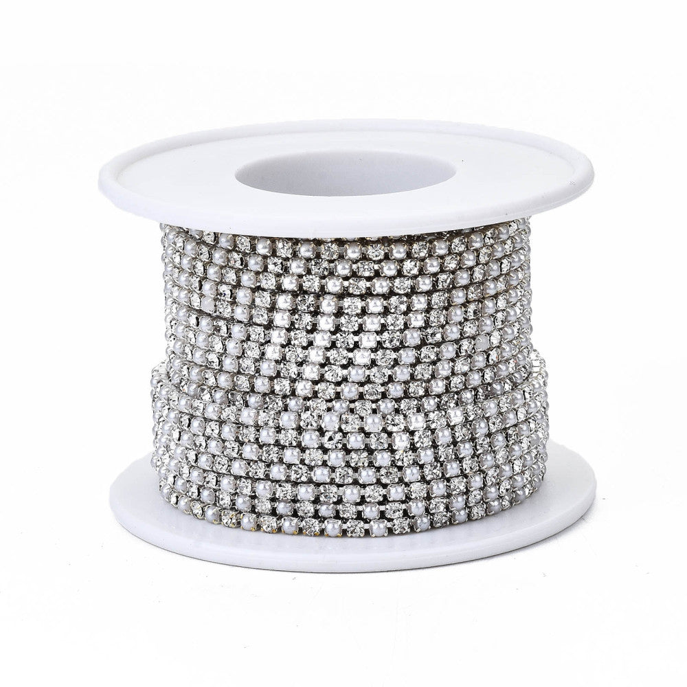 Elevate your jewellery designs with SS6 Metal Pearl & Rhinestone Banding — a 2 mm trim combining luminous faux pearls and brilliant rhinestones in a sleek metal chain. Perfect for earrings, pendants, and detailed accents, this elegant banding adds both texture and sparkle to your pieces. Its slim, flexible profile allows for easy shaping around curves and contours, making it ideal for outlining focal points or enhancing delicate designs. Simply cut to size and secure in place for a refined, eye-catching finish every time.