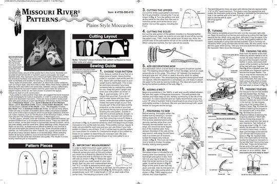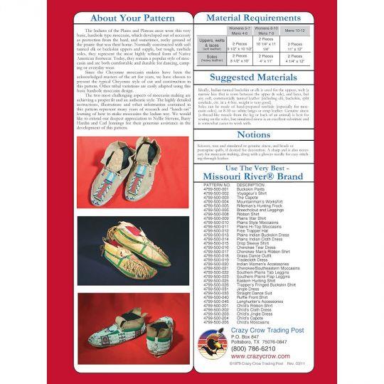 Description : Le seul modèle de mocassin authentique sur le marché. Les instructions illustrées incluent des conseils utiles sur l'assemblage et montrent une décoration correcte pour plusieurs styles tribaux.