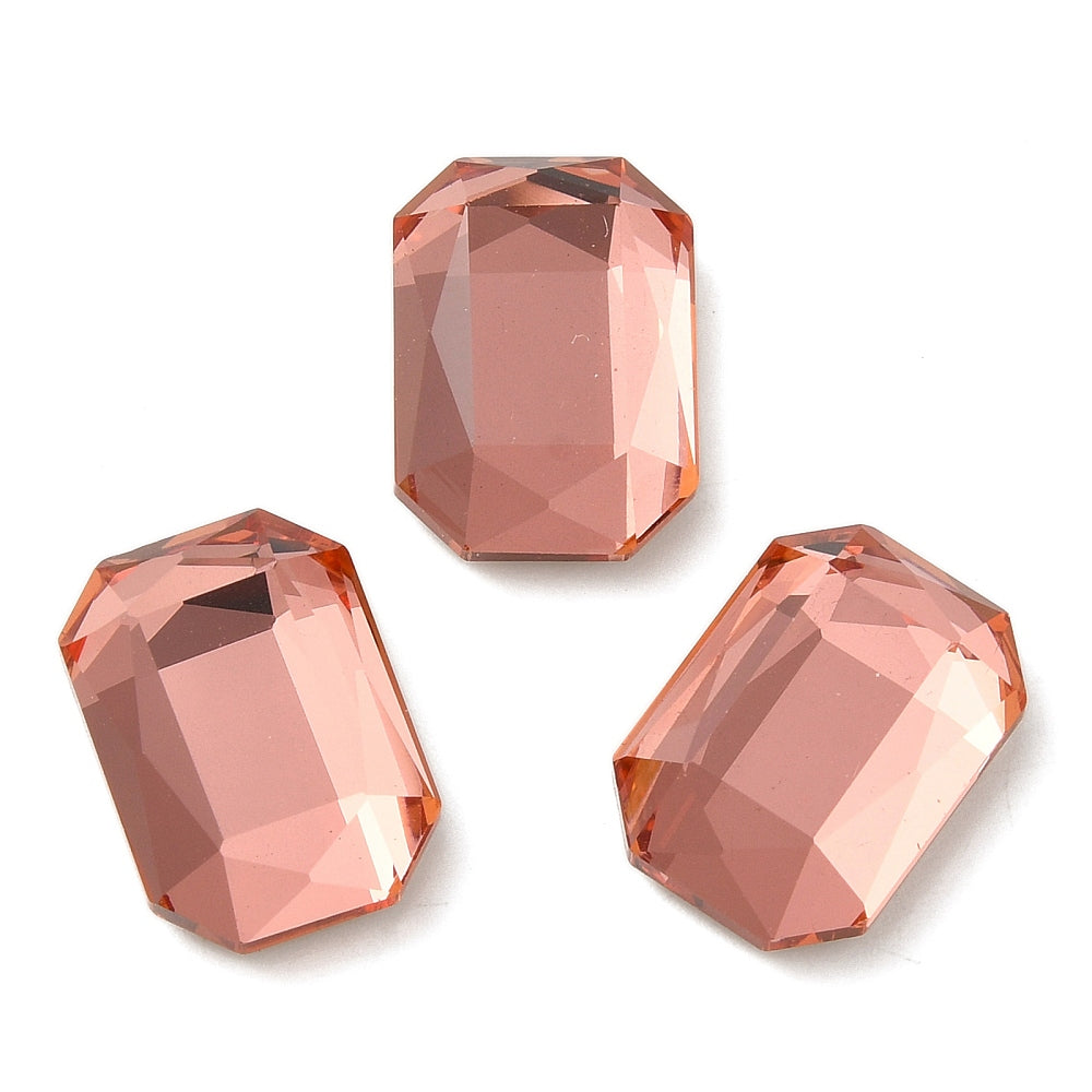 Description: Glass faceted rhinestone cabochons. Flat back and back plated. Used for making beaded earrings, pendants, and more. This item measures 14mm long x 10mm wide x 4.5mm thick.