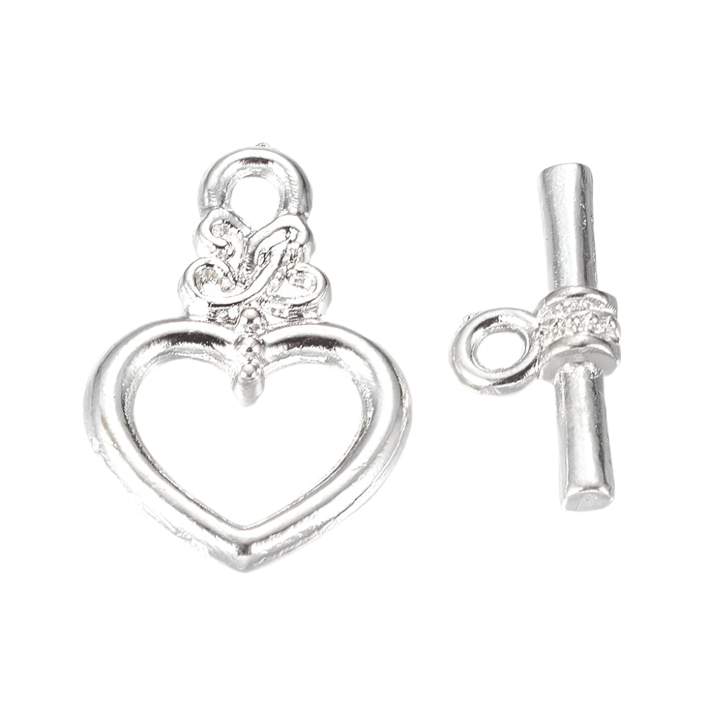 Toggle Clasp Silver Heart 10/pk