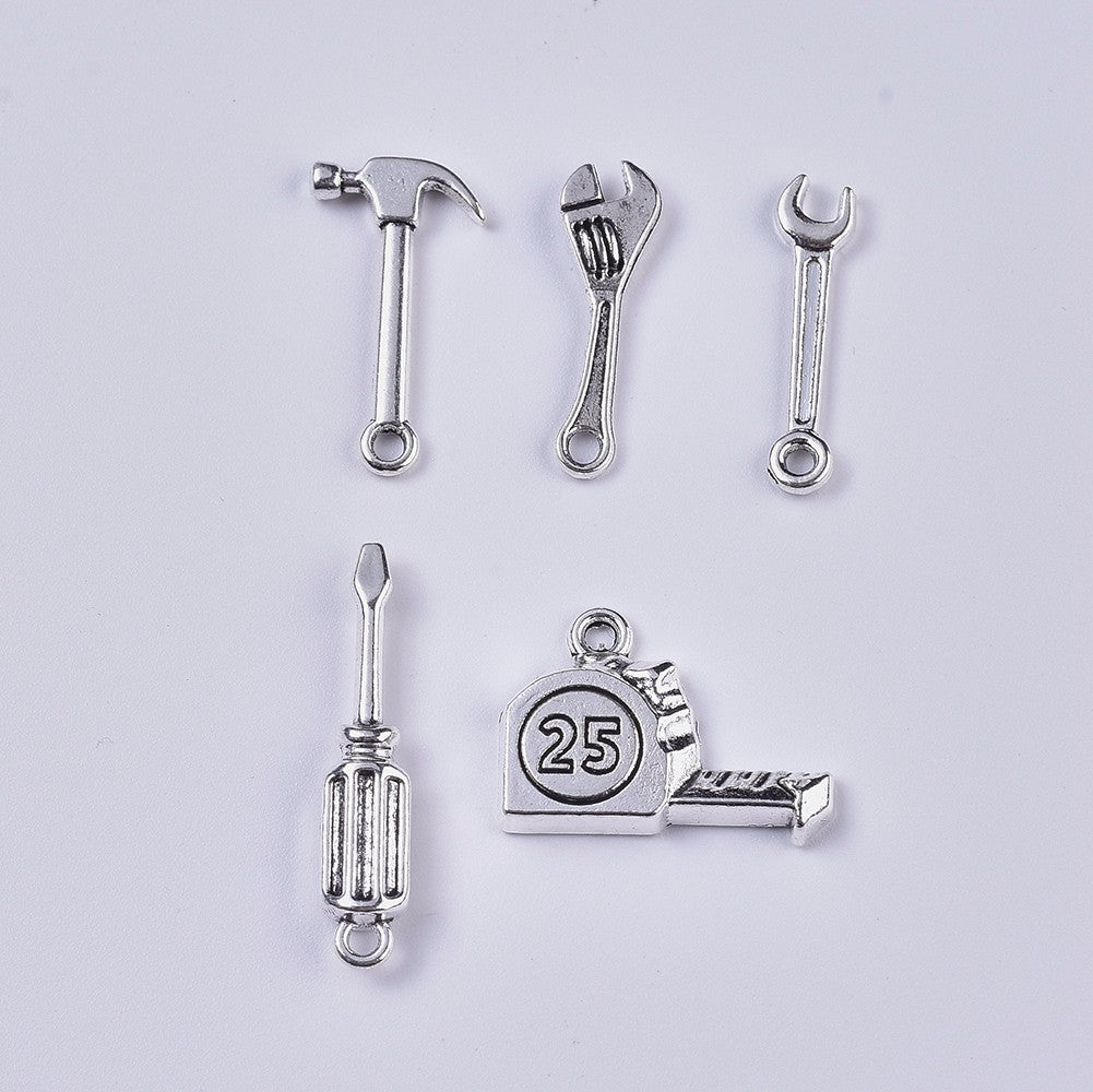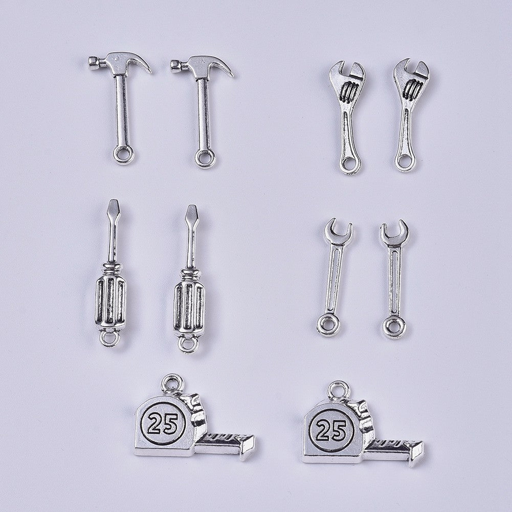 Build creativity into your designs with our Tool Charm & Pendant Set, a collection inspired by classic workshop essentials. Featuring miniature hammers, wrenches, and tape measures as charms, plus a larger screwdriver pendant, this set is perfect for DIY-inspired jewellery and gifts. Add them to bracelets, earrings, necklaces, or keychains for fun, detailed accents that celebrate craftsmanship and hard work.